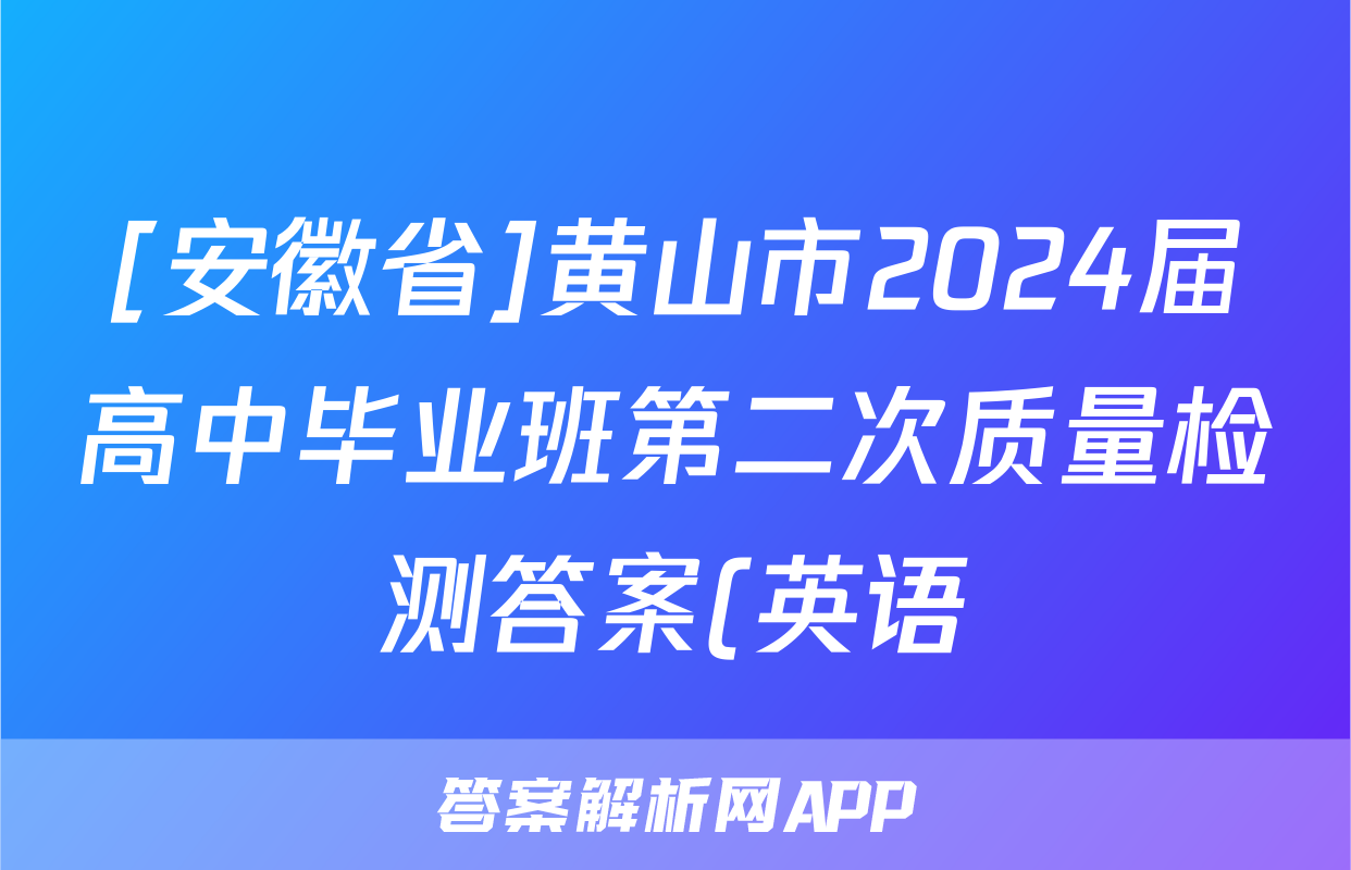 [安徽省]黄山市2024届高中毕业班第二次质量检测答案(英语)正在持续更新,目前2025衡水金卷先享题答案网为大家整理了相关试题及答案,供大家查缺补漏,高效提升成绩。