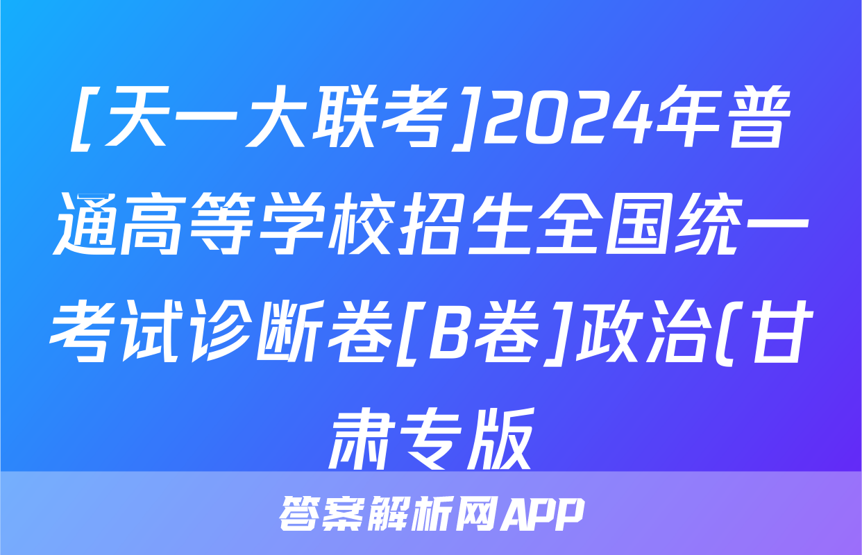 本文地址:[天一大联考]2024年普通高等学校招生全国统一考试诊断卷[B卷]政治(甘肃专版)答案