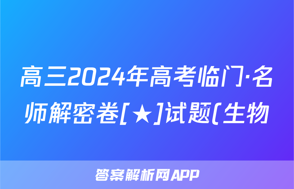 高三2024年高考临门·名师解密卷[★]试题(生物)正在持续更新,目前2025衡水金卷先享题答案网为大家整理了相关试题及答案,供大家查缺补漏,高效提升成绩。