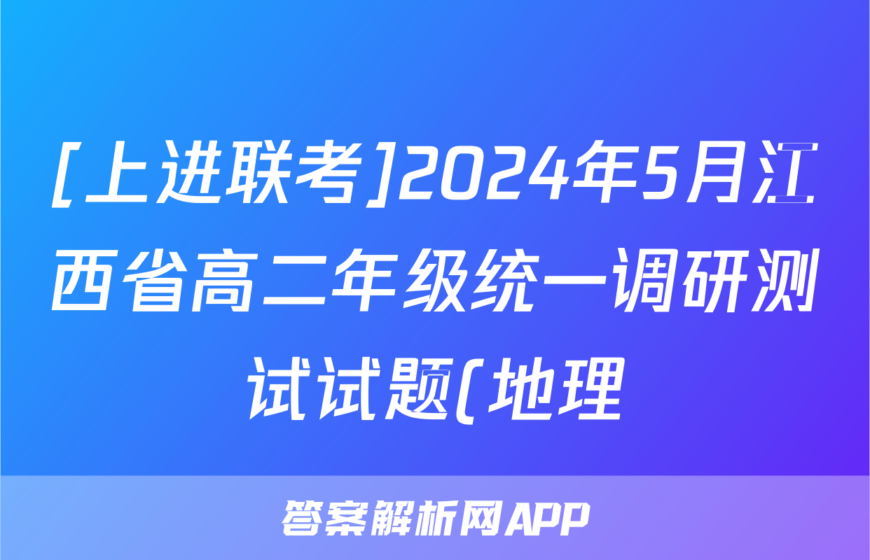 [上进联考]2024年5月江西省高二年级统一调研测试试题(地理)正在持续更新,目前2025衡水金卷先享题答案网为大家整理了相关试题及答案,供大家查缺补漏,高效提升成绩。