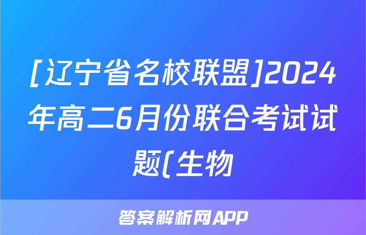 [辽宁省名校联盟]2024年高二6月份联合考试试题(生物)正在持续更新,目前2025衡水金卷先享题答案网为大家整理了相关试题及答案,供大家查缺补漏,高效提升成绩。